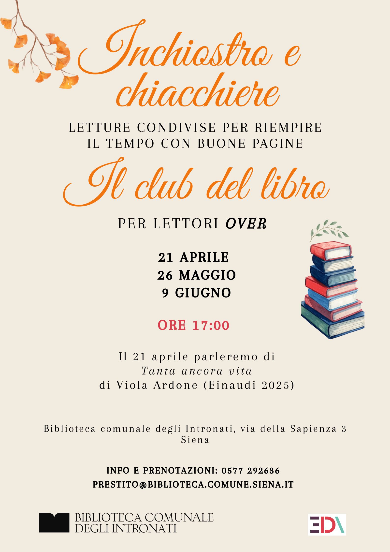 Inchiostro e chiacchiere è il nuovo gruppo di lettura per lettori over. Uno spazio dedicato a chi ama leggere con calma, condividere pensieri e ritrovare il piacere della conversazione.